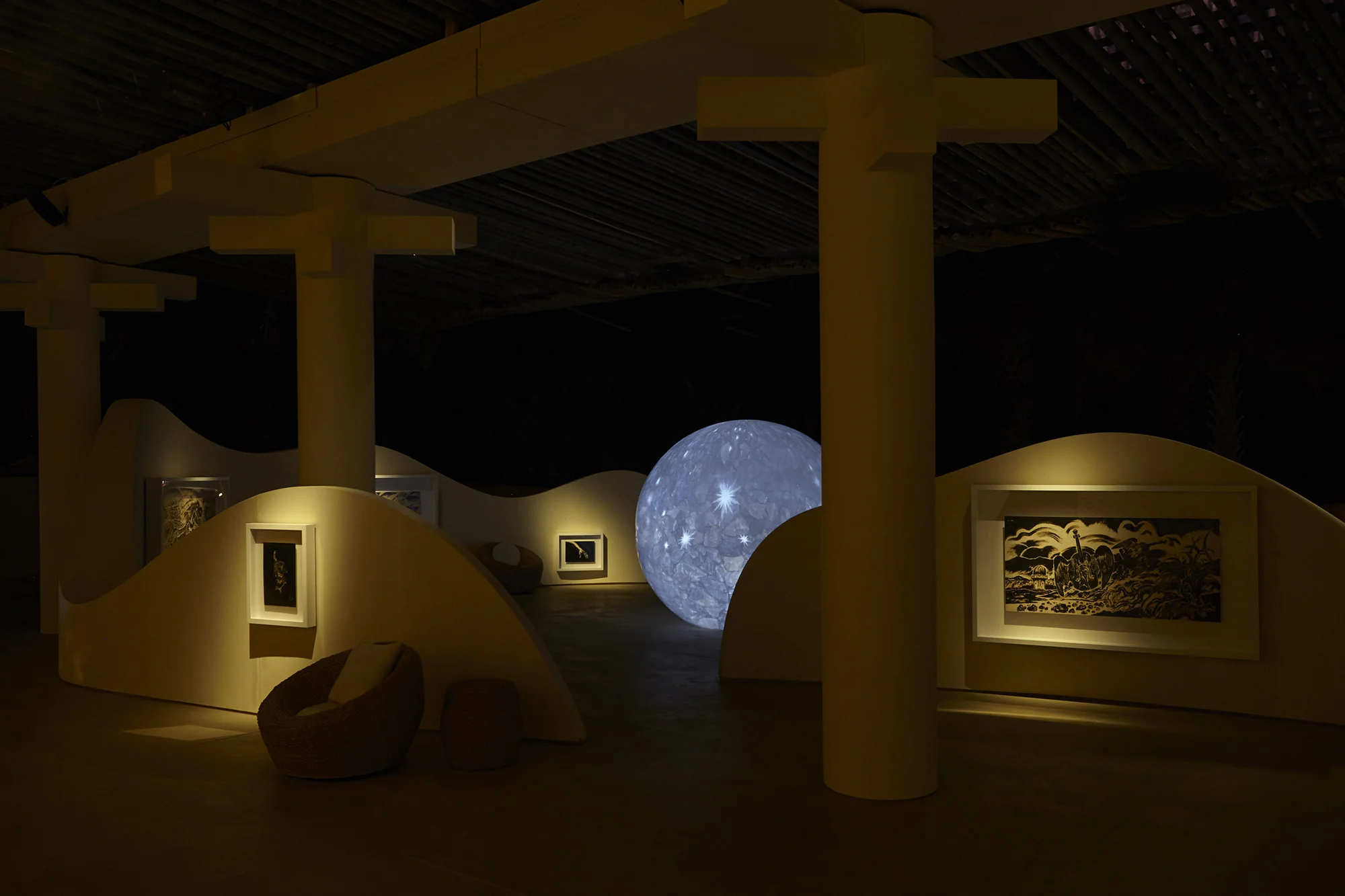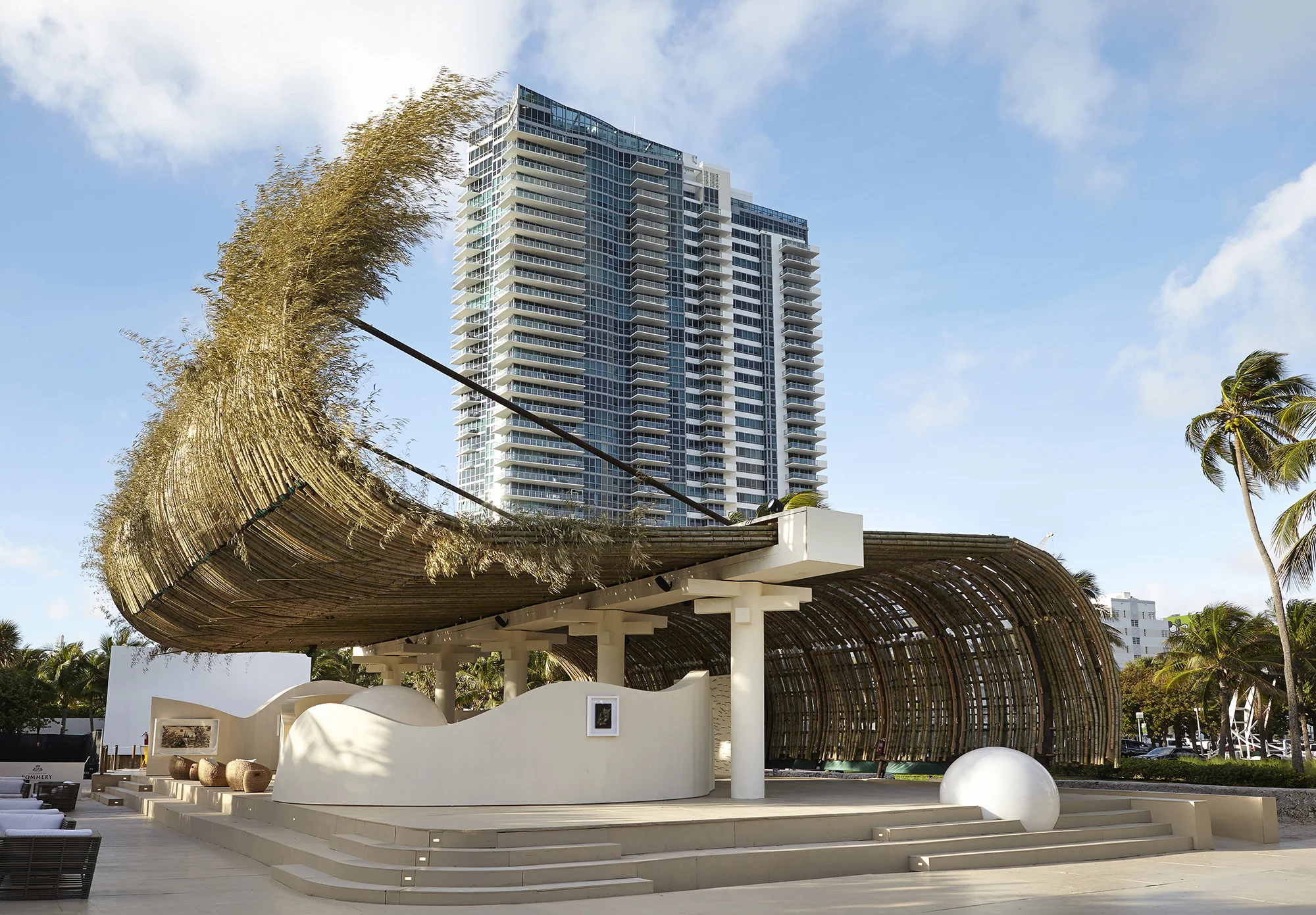 Site-specific installation designed, engineered and fabricated by Solid for the MA3 Agency (curator and producer), commissioned by Audemars Piquet, Reconstruction of the Universe Art Installation by Sun Xun during Art Basel Miami. Custom Video Sphere fabrication and plexiglass sphere digitally fabrication with interior projection using custom 3D mapping software, installed three spheres with diameters of 5, 6 and 8 feet. Curved steel armature covered in 112 custom Japanese timber bamboo panels.