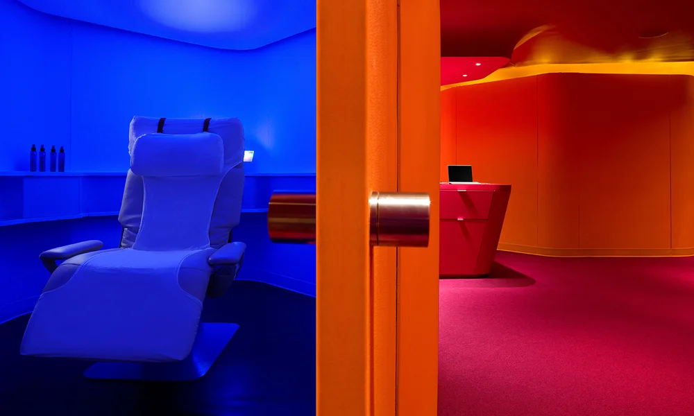 XTILE WAITING AREA AND PRIVATE THERAPY ROOMS Built by by Solid, benches and porthole window for waiting area and private therapy wellness rooms of Yelo Spa, New York.